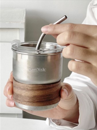 Sandisk Stainless Steel Coffee Mug with Bamboo Cup Holder